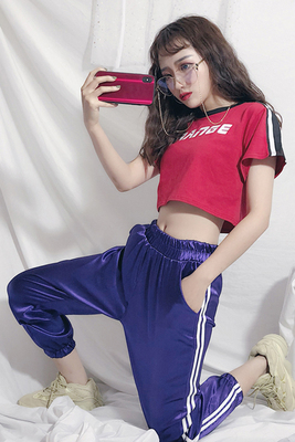 Thời trang giản dị phù hợp với nữ mùa hè 2018 mới hoang dã Hàn Quốc ngắn- tay t- shirt + lỏng bên hai 扛 chùm quần đồ bộ kiểu đẹp 2021