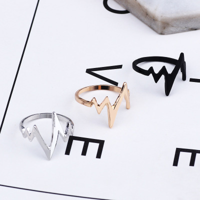 Thời trang Hàn Quốc cá tính 韶 nhẫn hợp kim mới sáng tạo màu tím ECG nhẫn đôi quà tặng ngày Valentine - Nhẫn nhẫn cưới doji