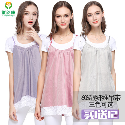 Thời trang Hàn Quốc phiên bản Yunkang phù hợp với bà bầu ăn mặc phụ nữ mang thai đích thực quần áo vest váy màu bạc sợi dây áo áo yếm chống bức xạ cho bà bầu Bảo vệ bức xạ