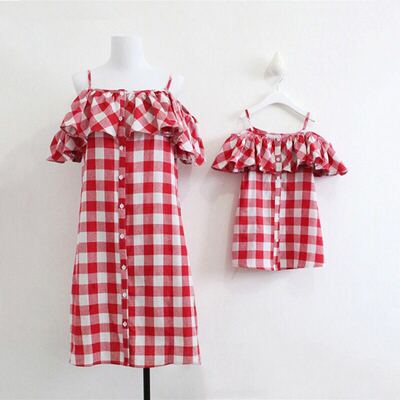 Thời trang hè 2019 kẻ sọc bằng vải cotton và vải lanh cổ áo có dây buộc ở vai và váy mẹ-con - Trang phục dành cho cha mẹ và con shop quần áo trẻ em đẹp Trang phục dành cho cha mẹ và con