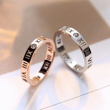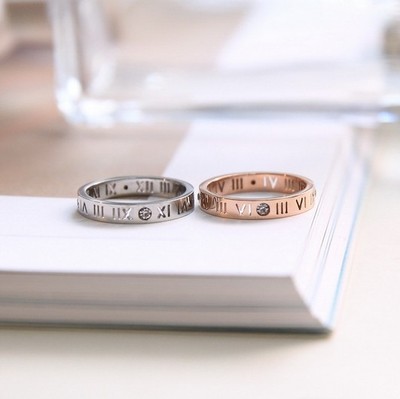Thời trang mới của Hàn Quốc may mắn Chữ số La Mã tăng vàng đôi nhẫn nhẫn nhẫn thép titan trang trí Giáng sinh nhẫn đeo ngón út Nhẫn