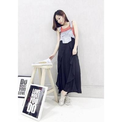 Thời trang mới xúng xính váy lỏng dây đeo váy voan váy denim dây đeo váy đầm lớn đầm xòe dài qua gối Váy dài