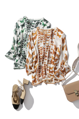 Thời trang! Tính khí nghệ thuật! Ánh sáng và thoáng khí gai trộn in đầu đan bướm cardigan nữ Vòng cổ áo len