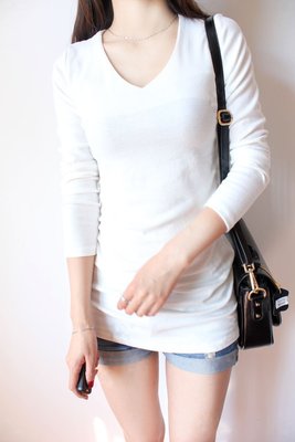 Thu đông 2017 phiên bản Hàn Quốc mới của áo thun cotton kẻ sọc cổ chữ V dài cổ áo Slim dài tay áo thun hông dài áo sơ mi áo phông nữ đẹp Áo phông