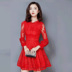 Thu đông 2018 mới đầm ren trắng nữ dài phần tay dài eo thon gọn khí chất Một chiếc váy chữ váy sát nách chữ a