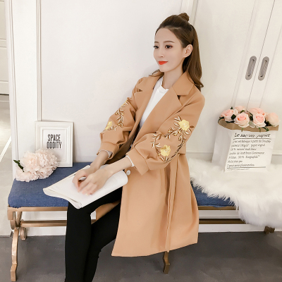 Thu đông 2018 phiên bản mới của Hàn Quốc với phần dài áo len dày thêu thủy tinh đèn lồng tay áo thắt eo len nữ áo măng tô burberry nữ