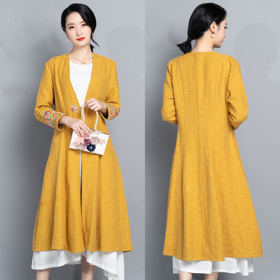 Thu đông 2018 thiết kế ban đầu mới cao cấp phong cách dân tộc retro thêu áo khoác dài đến eo áo khoác cardigan áo khoác dạ nữ 2020 Accentuated eo áo