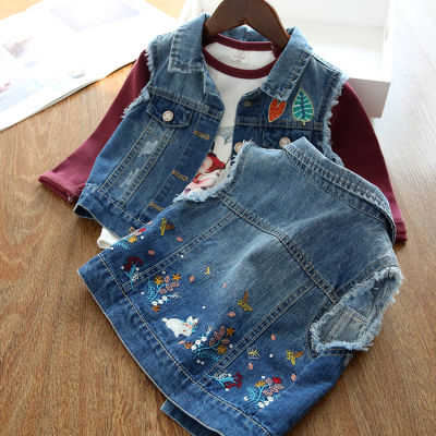 Thực tế hoang dã ~ cô gái lỗ denim vest yang thêu áo khoác bé gái 2019 thu mới - Áo ghi lê quần áo trẻ em xuất khẩu