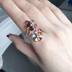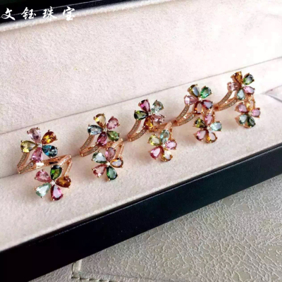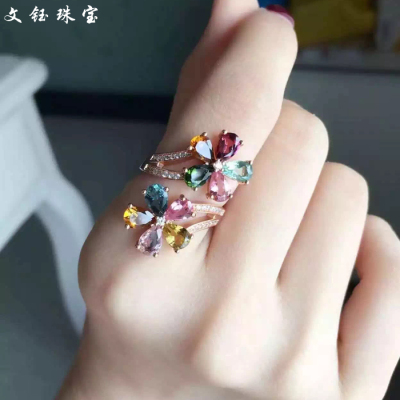 Thương hiệu lớn với cùng vòng tự nhiên tourmaline nữ 925 bạc hồng vàng tourmaline ngón trỏ nhẫn thời trang ngọt ngào may mắn - Nhẫn đeo nhẫn ngón trỏ Nhẫn
