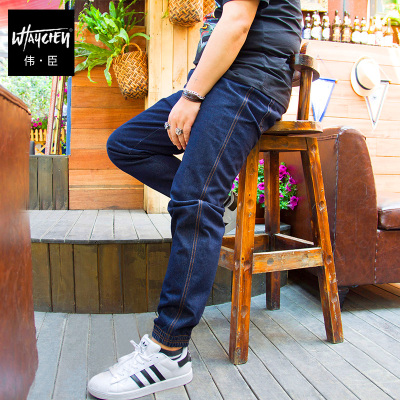 Tide thương hiệu quần tây nam size lớn cộng với phân bón tăng jeans nam chân béo quần quần béo quần mùa thu quần áo nam hàng hiệu Cao bồi