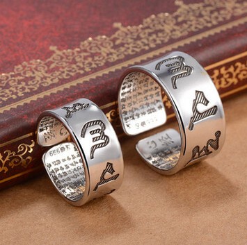 Tín đồ Phật giáo nam sáu câu thần chú retro hipster mở độc đoán Thái bạc bạc Tây Tạng nhẫn trái tim Polomituo nhẫn nam vàng tây Nhẫn