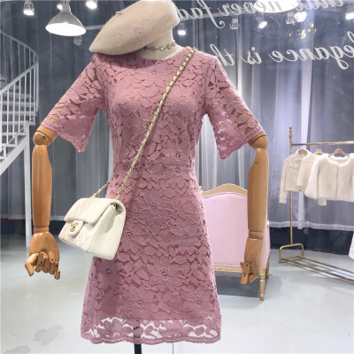 Tính khí Lady Crochet Ren Váy Nữ 2018 Mùa Hè Mới của Hàn Quốc Ngắn Tay Cao Eo Slim Joker Ăn Mặc váy nịt eo