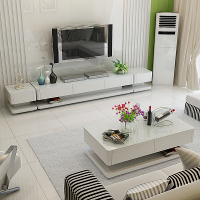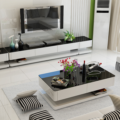 Toàn bộ bộ bàn ghế hiện đại tối giản sơn piano kính cường lực TV tủ bàn cà phê kết hợp bộ giường
