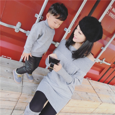 Tong Tong thỏ nhà cashmere lõi sợi chạm đáy áo len cao cổ áo mẹ-con đầm mẹ hai mặc đồ cặp gia đình Trang phục dành cho cha mẹ và con