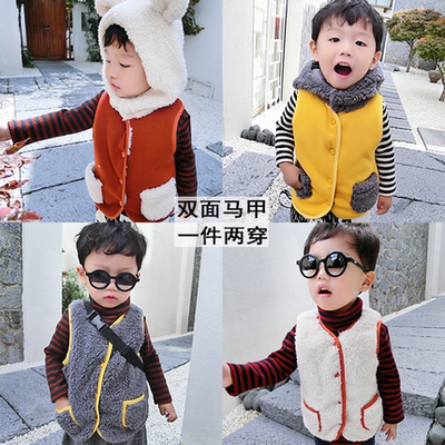 Tong Tongjia Trẻ em vest mùa đông dày da cừu mặc hai mặt màu túi ấm áo vest bé áo phao cho bé gái