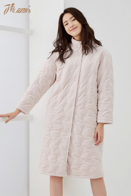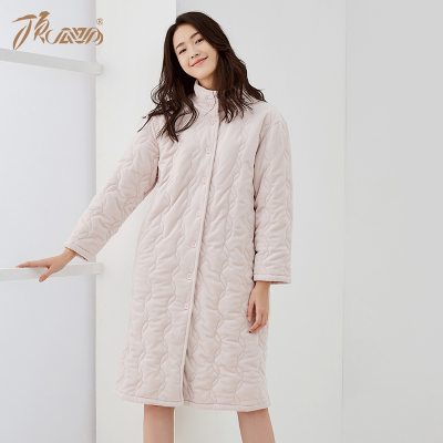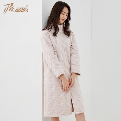 Top dưa mùa đông nữ ba lớp độn bông áo ngủ ấm áp màu rắn thoải mái thời trang dịch vụ nhà phụ nữ có thể mặc áo choàng ngủ Night Robe