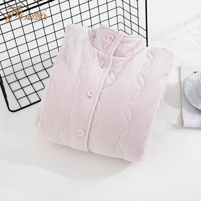 Top dưa mùa đông nữ ba lớp độn bông áo ngủ ấm áp màu rắn thoải mái thời trang dịch vụ nhà phụ nữ có thể mặc áo choàng ngủ