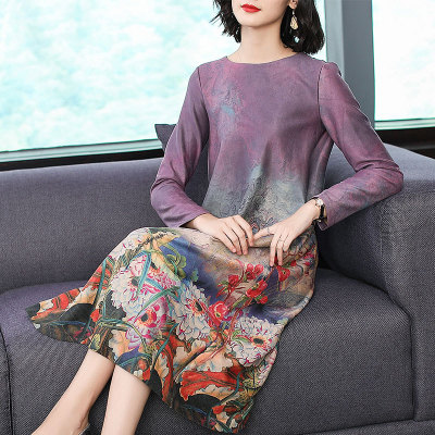 Trạm châu âu 2018 đầu mùa thu mới của phụ nữ thời trang loose in dress phần dài vòng cổ dài tay áo một từ váy mẫu váy xòe đẹp A-Line Váy