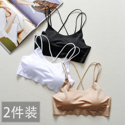 Trắng băng lụa làm đẹp lưng ống hàng đầu chống ánh sáng ngắn áo ngực đáy quần lót ngực phụ nữ với miếng đệm ngực - Ống áo bra 2 dây