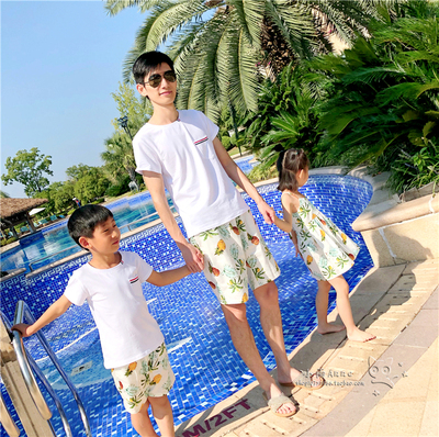 Trang phục đi biển bãi biển mùa hè mặc một gia đình gồm ba bốn người cha và con trai Hàn Quốc - Trang phục dành cho cha mẹ và con áo nỉ có mũ cho cả nhà Trang phục dành cho cha mẹ và con