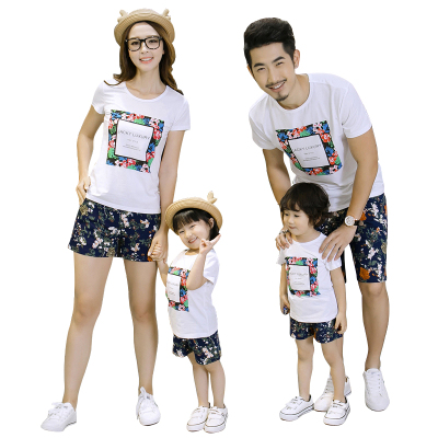Trang phục gia đình mới 2019 Trang phục mùa hè Một gia đình gồm ba gia đình phù hợp với áo thun ngắn tay bên bờ biển gia đình cha mẹ-con - Trang phục dành cho cha mẹ và con quần áo gia đình 4 người Trang phục dành cho cha mẹ và con