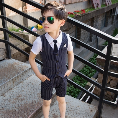 Trang Phục trẻ em Trai Little Hosts Dresses Mùa Hè Flower Girl Dresses Trai Nhỏ Phù Hợp Với Ngắn Tay Áo Bộ England váy biểu diễn cho trẻ em