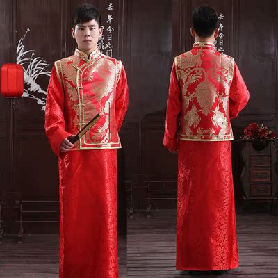 Trang phục trình diễn trang phục quốc gia Wo trang phục chú rể váy cưới Trung Quốc áo choàng nam Ma Rong bánh mì nướng áo choàng đỏ quốc phục