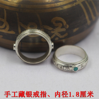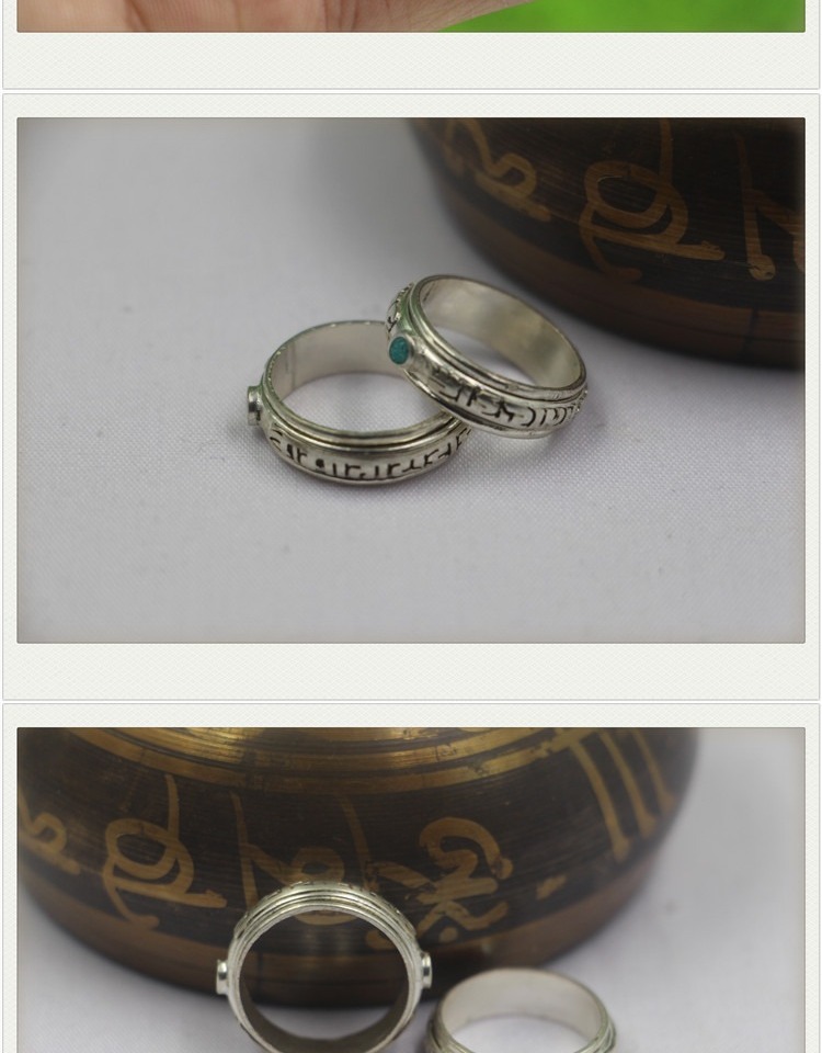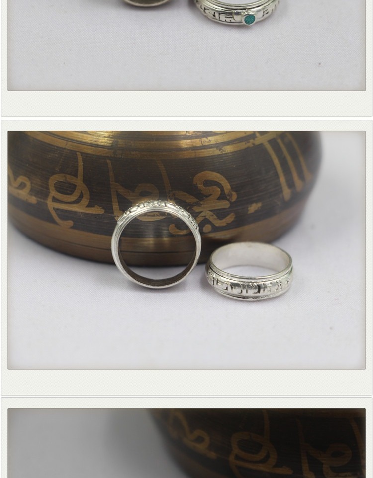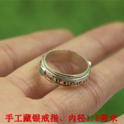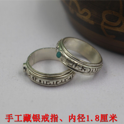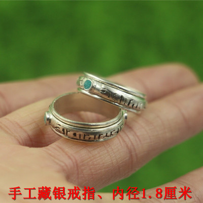 Trang sức mới Nepal Handmade Silver National Wind Sáu chữ Thần chú Nhẫn Mặt dây chuyền Mặt dây chuyền Nam và Nữ nhẫn cưới Nhẫn