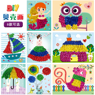 Tranh vẽ vỏ trẻ em tự làm tranh dán tay mẫu giáo sản xuất vật liệu gói sáng tạo dán đồ chơi giáo dục ba chiều cách làm đồ chơi Handmade / Creative DIY