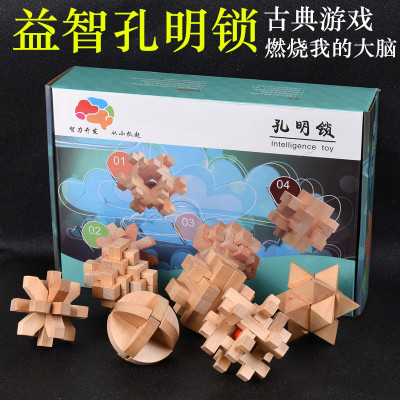 Trẻ Dele dành cho người lớn Trẻ em Câu đố Mở khóa bằng gỗ Đồ chơi thông minh Lắp ráp Khóa Kong Ming Khóa Lu Ban Khóa Sáu mảnh đồ chơi rubic