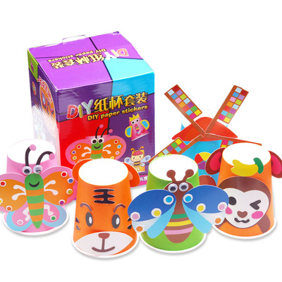 Trẻ em làm bằng tay tự làm sản xuất cốc giấy đặt gói vật liệu mẫu giáo stereo dán dán sáng tạo đồ chơi giấy làm đồ chơi sáng tạo