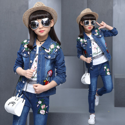 Trẻ em mặc 3 bé gái mùa thu 4 bộ đồ denim 2017 mới 7 xuân 5 xuân và thu 6 phiên bản Hàn Quốc 9 ba bộ thủy triều 11 tuổi quần áo trẻ sơ sinh cao cấp