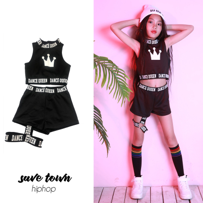 Trẻ em mới của cô gái hip-hop jazz trang phục múa vest quần short phù hợp với màu đen jazz nữ xu hướng hiphop trang phục giáng sinh trẻ em