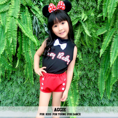 Trẻ em mới của cô gái jazz jazz trang phục múa Hàn Quốc khiêu vũ vest mickey đỏ đen quần short phù hợp với hiphop quần áo trẻ em