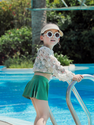 Trẻ em mới dễ thương và thoải mái đi biển áo tắm chia váy tam giác bốn mảnh in gió bé bơi nữ - Bộ đồ bơi của Kid đồ bơi cho be trai 10 tuổi Bộ đồ bơi của Kid