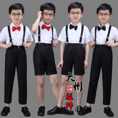 Trẻ em Quần Yếm Có Dây Đeo Hoa Cô Gái Ăn Mặc Khiêu Vũ Boy Ngắn Tay Áo Quần Dây Sinh Viên Điệp Khúc váy trẻ em