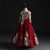 Trẻ em váy công chúa cô gái sinh nhật dài tay từ hoa vai cô gái đám cưới trang phục piano đỏ mùa thu và mùa đông quan ao tre em Váy trẻ em