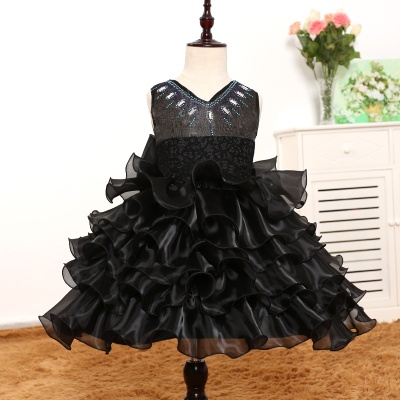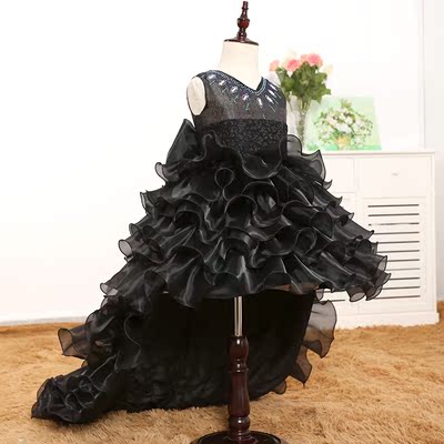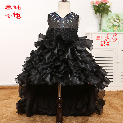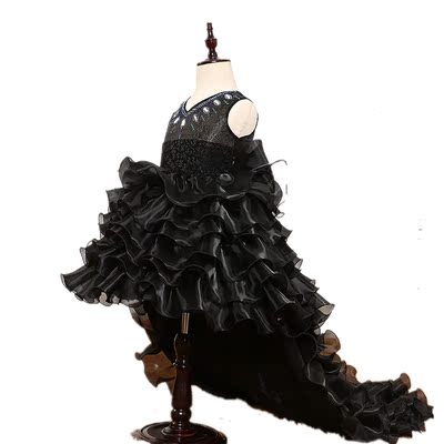Trẻ em váy công chúa váy đen có thể tháo rời váy tuxedo hiển thị hiệu suất nhảy váy cô gái hoa váy - Váy trẻ em váy dài tay bé gái
