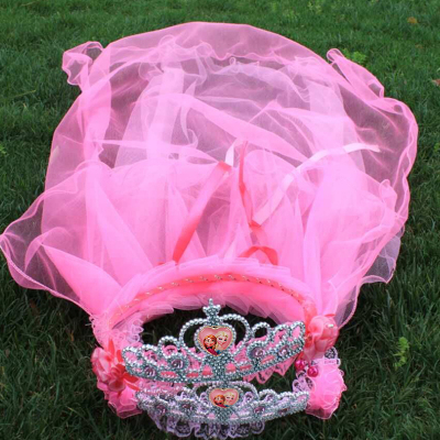 Trẻ em Vương miện Công chúa Veil Cô gái Vòng hoa Mũ nón Băng Ice Romance Vương miện Cô gái Magic Wand kẹp tóc dài Phụ kiện tóc