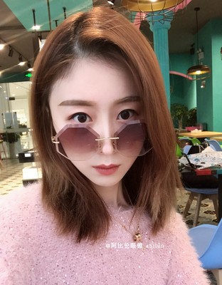 Triều Châu đẹp trai mát mẻ kính mát mới thiết kế hình bát giác cạnh không có thiết kế viền kính râm màu trà ánh sáng cắt cạnh kính mắt kính shady