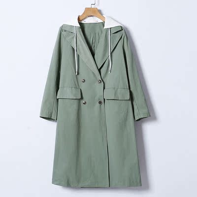 Trùm đầu lỏng dài rãnh áo nữ 2018 mùa thu mới đôi ngực phù hợp với cổ áo dài tay áo Q8D044 áo khoác lông nữ Trench Coat