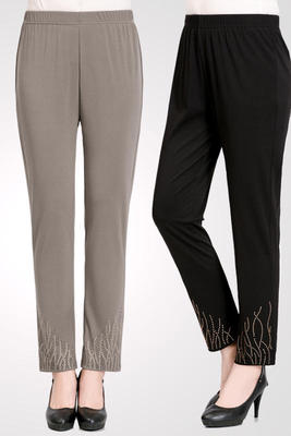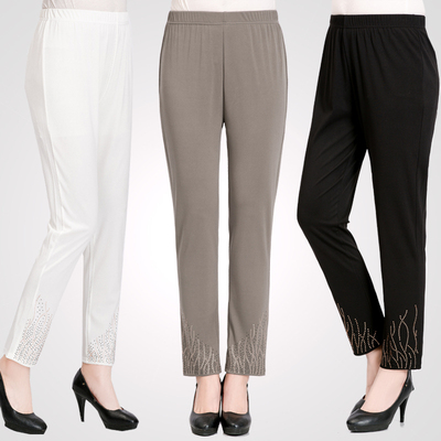Trung niên và cũ đàn hồi eo chín điểm băng lụa quần nữ mùa hè phần mỏng kích thước lớn mẹ nạp đàn hồi quần phần mỏng 9 quần quần ống suông cho tuổi trung niên Quần áo của mẹ