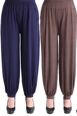 Trung niên và mẹ già ăn mặc mùa xuân và mùa hè mùa thu phương thức đàn hồi eo lỏng quần phụ nữ trung niên của quần cotton giản dị cây ra hoa áo voan kiểu tuổi trung niên
