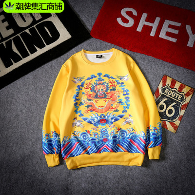 Trung Quốc áo len gió nam độc đoán áo choàng in Qing hoàng đế quần áo chính thức thủy triều nam và nữ áo dài tay áo mùa thu hoodie cặp Áo len