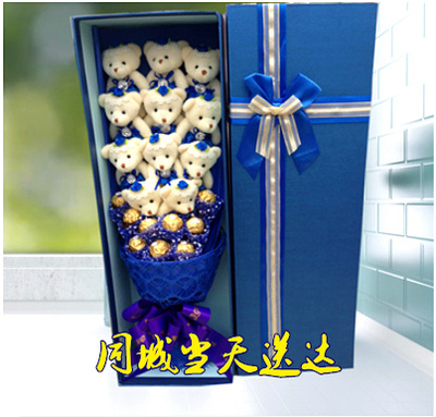 Trung quốc Ngày Valentine Giao Hàng Hoa 9 Phim Hoạt Hình Búp Bê Bó Hoa Sô Cô La Gấu Hộp Quà Tặng Cáp Nhĩ Tân Thành Phố Giao Hàng hoa sáp tím Hoa hoạt hình / Hoa sô cô la