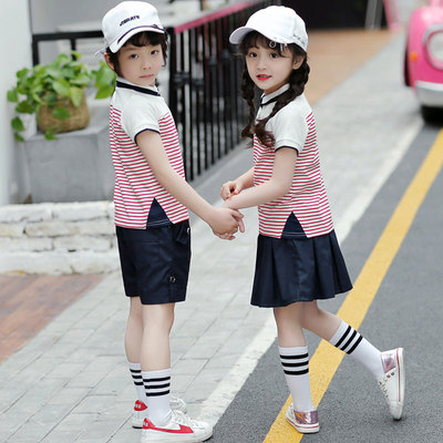 Trường tiểu học đồng phục mùa hè quần áo mẫu giáo quần áo mùa hè ngắn tay quần áo trẻ em thể thao phù hợp với trẻ em của lớp dịch vụ tùy chỉnh đồng phục trường học Đồng phục trường học / tùy chỉnh thực hiện