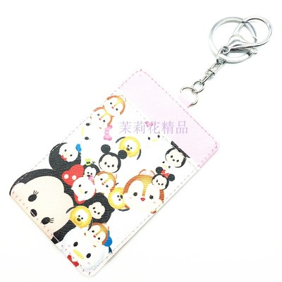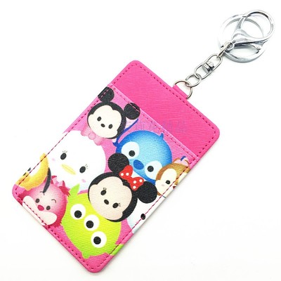 TSUM phim hoạt hình hai lớp chủ thẻ xách tay hai lớp PU chủ thẻ da phim hoạt hình dễ thương Mickey head chủ thẻ không thấm nước vỏ bọc thẻ căn cước
