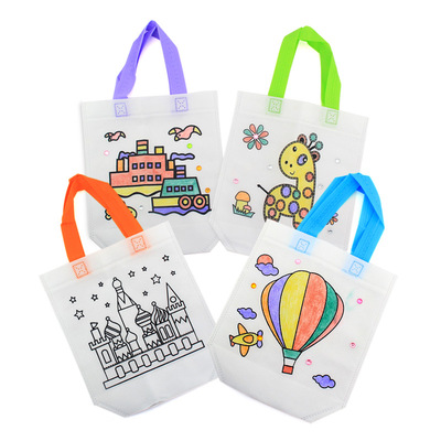 Tự làm bảo vệ môi trường túi màu graffiti túi Trẻ em handmade sáng tạo màu vật liệu sơn Túi không dệt thế giới đồ chơi cho bé