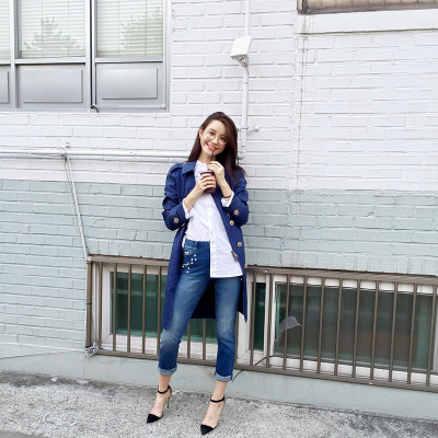 Tủ quần áo hạnh phúc của tôi, Zhang Dazhao, anh hùng, mát mẻ, đẹp trai, săn bắn, áo gió xanh ven sông, cùng một nữ triều mùa thu áo ấm trung niên Trench Coat