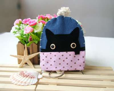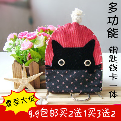 Túi chìa khóa dễ thương đa chức năng nữ ví tiền xu loại kéo công suất lớn phim hoạt hình sáng tạo vải gói thẻ xe một móc khóa túi mini